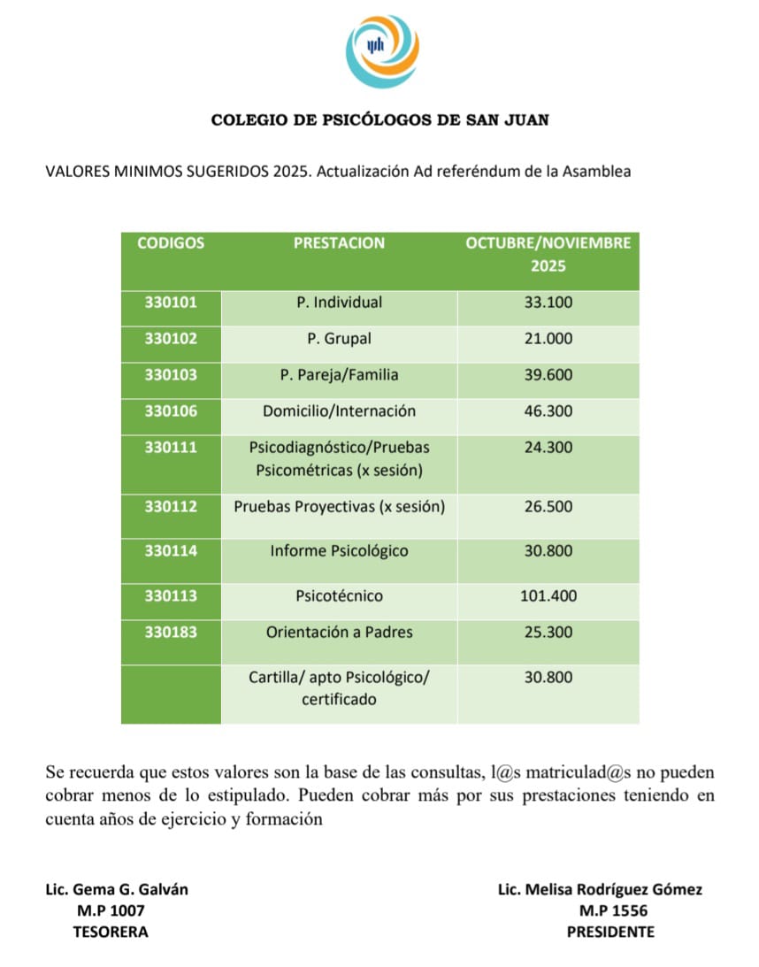 VALORES MÍNIMOS SUGERIDOS 2025 (Octubre/Noviembre 2025)